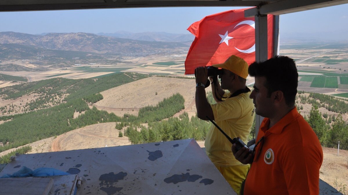Bölgede görev yapan kuzenler Kenan ve Kerim Bakır, orman yangınlarına karşın kuleyi hiç boş bırakmıyor.