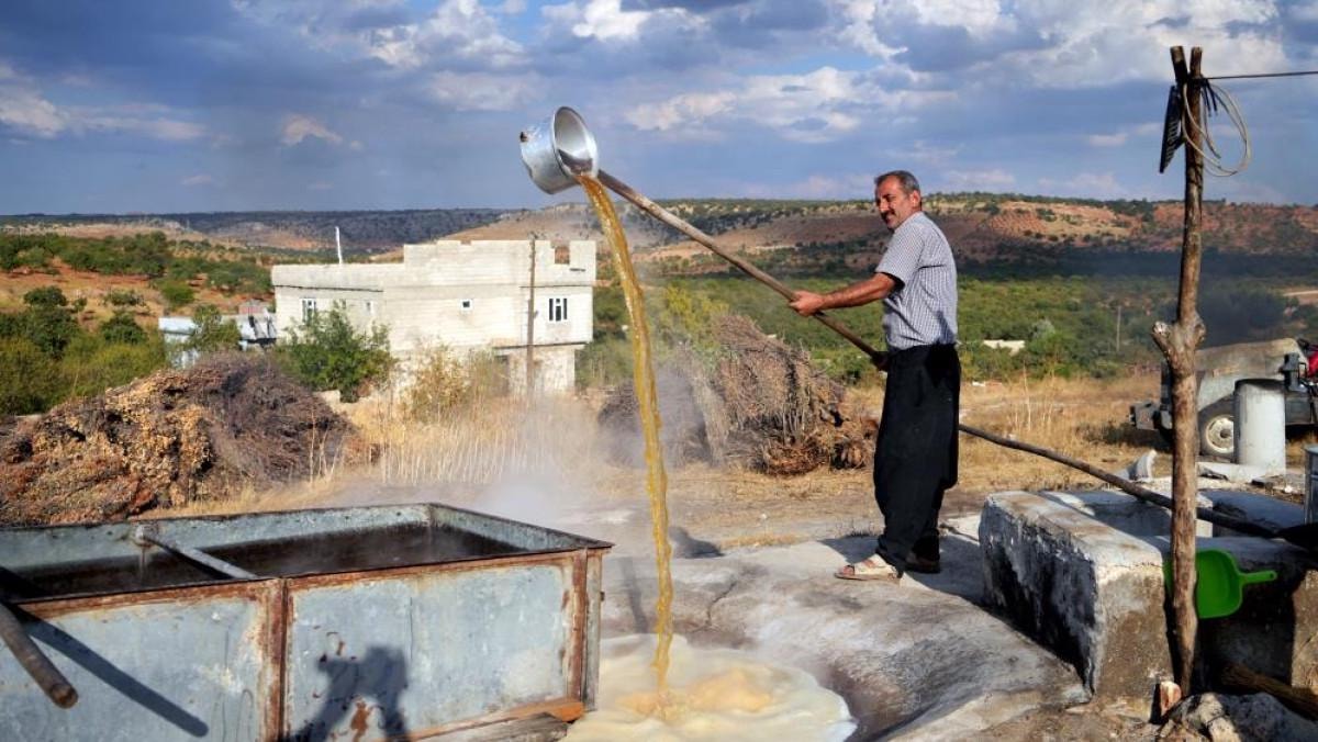 Gaziantep'in köylerinde çiftçiler tarafından yetiştirilen üzümün pekmeze dönüştürülmesi için yoğun mesai harcanıyor.