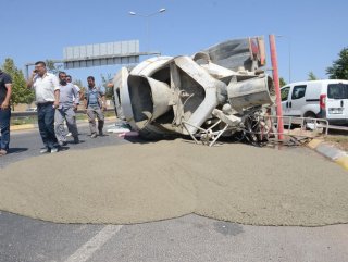 Öğle saatlerinde Gaziantep-Kilis yolunda meydana gelen kazada, beton mikseri, virajı alamayıp bariyerlere çarparak devrildi.