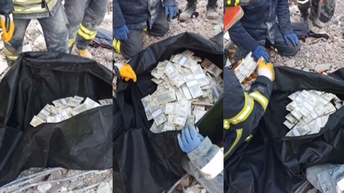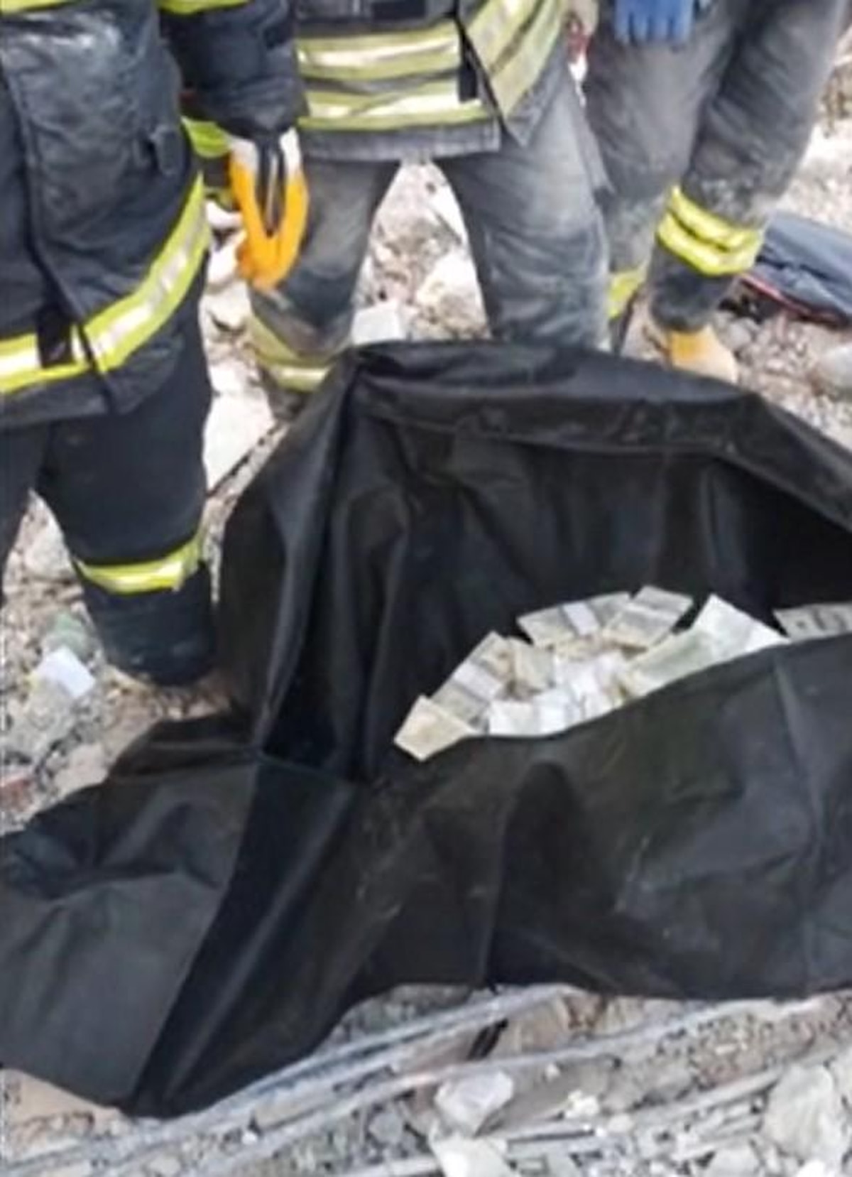 Kahramanmaraş merkezli iki büyük depremin ardından çöken Gaziantep'teki Ayşe Mehmet Polat Sitesi'nde arama kurtarma faaliyeti yürüten Gaziantep Büyükşehir Belediyesi İtfaiye Daire Başkanlığı ekipleri, enkazdan çıkardıkları bir kişinin yanında bir miktar para buldu.