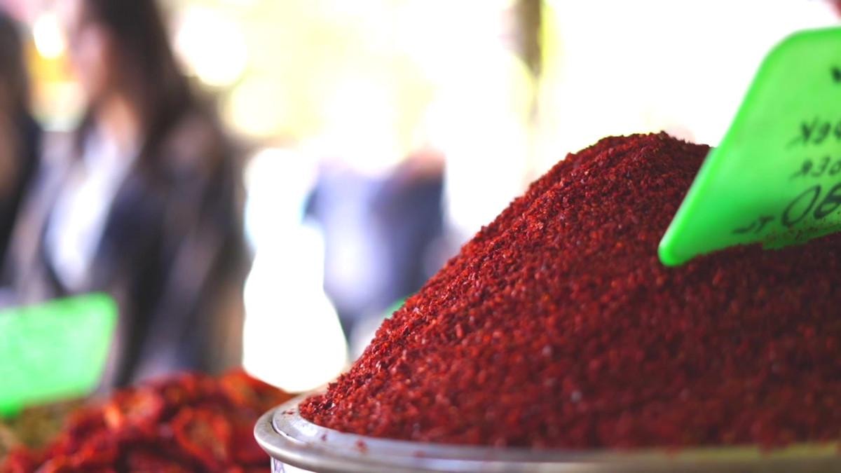 Coğrafi işaretle tescillenen İslahiye biberi için de tezgahları gezen Gaziantep Baharat Müzesi Müdürü Hazal Bostancıeri, "Biz şimdi Gaziantep’in eski çarşı olarak bilinen yerindeyiz, Almacı Pazarı’ndayız. Baharat Müzesi için baharat alabileceğimiz en iyi yerdeyiz.