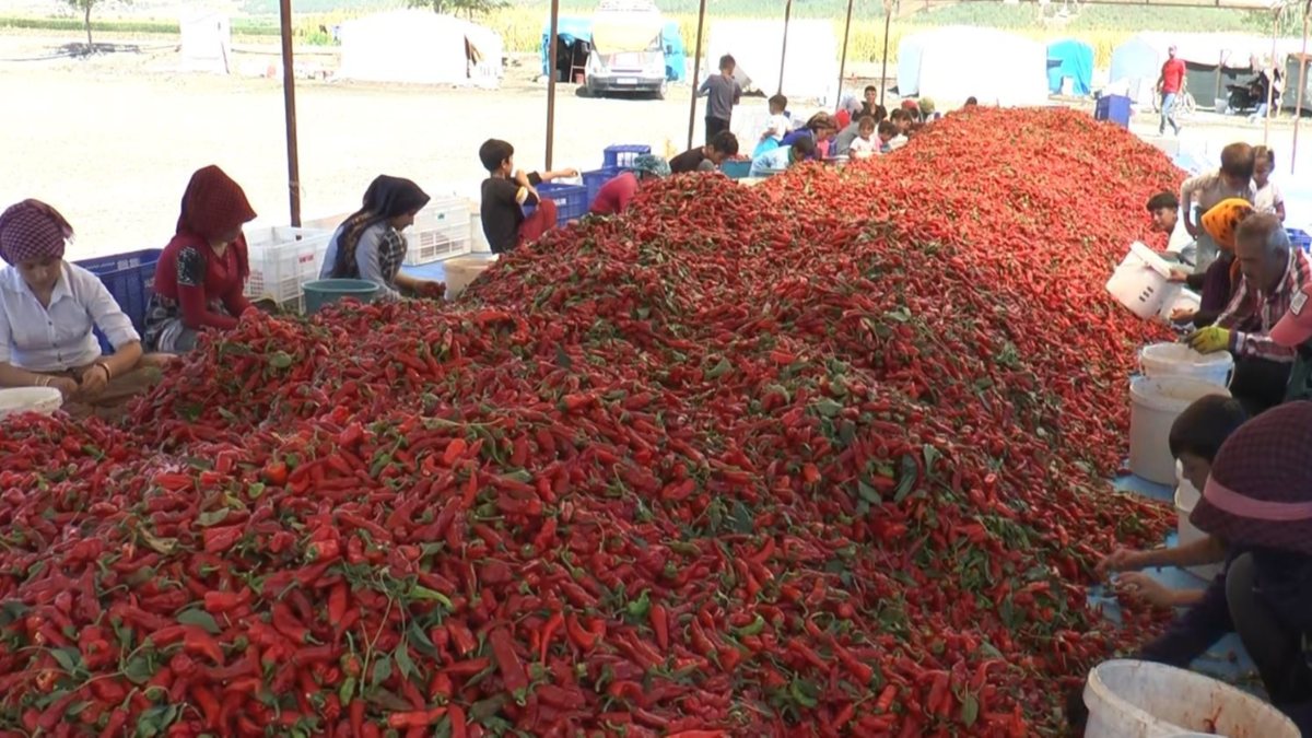 Kırmızı biberiyle ün salan Gaziantep'te işçiler, biber hasadı birlikte bölgeye mevsimlik işçiler akın etti.