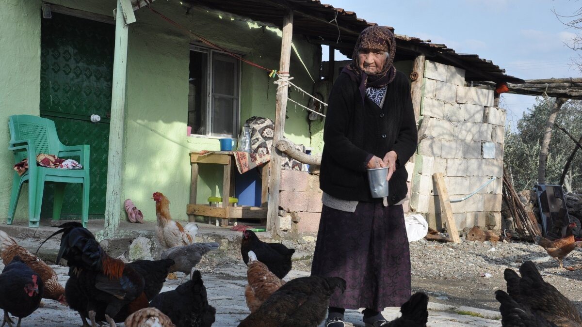 İlerleyen yaşına rağmen günlük yaşamını kimseden destek almadan sürdüren Özo Bozgeyik, her sabah kalkıp bahçede tavukları besleyerek ev işlerine yardımcı oluyor.