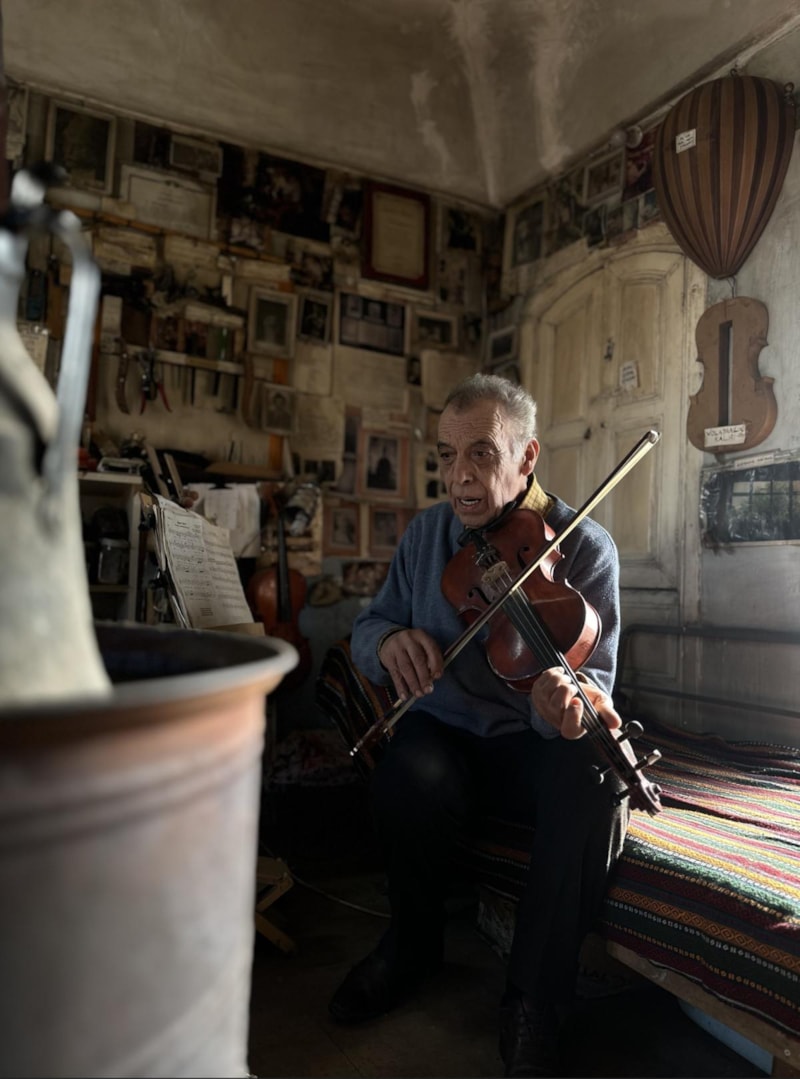 O, çok az bulunan bir meslek dalını sürdürüyor, ekmek parasını el emeği ve sanatçı ruhuyla kazanıyor. İmal ettiği ud ve kemanları ustalık seviyesinde çalabiliyor.