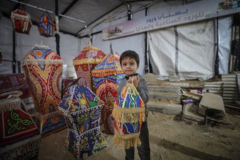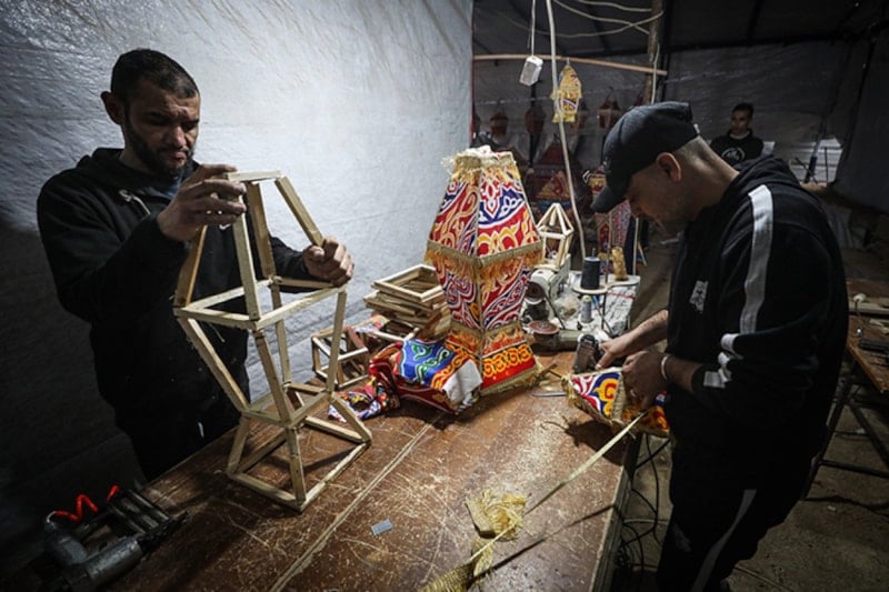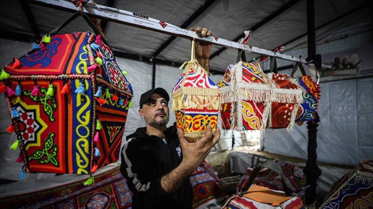Savaşın gölgesinde kurulan bu küçük çadır atölyesinde üretilen ramazan fenerleri, Gazze’de hem bir geçim kaynağı hem de zor şartlar altında ayakta kalma mücadelesi veren aileler için umudun simgesi olmayı sürdürüyor.
