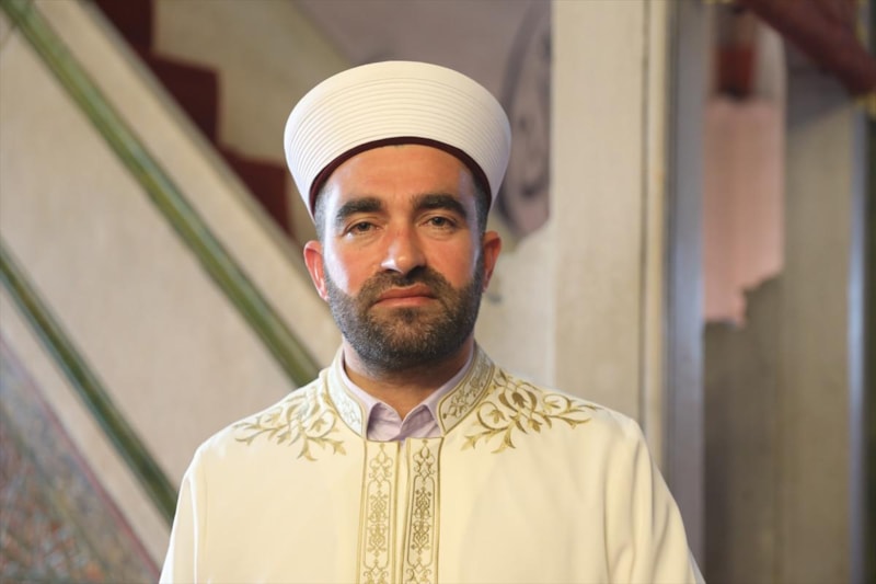 Eski Cami Müezzini Harun Kezer, Osmanlı mirası kılıçla hutbe geleneğini sürdürmenin ve Eski Cami'de görev yapmanın mutluluğunu yaşadıklarını söyledi.