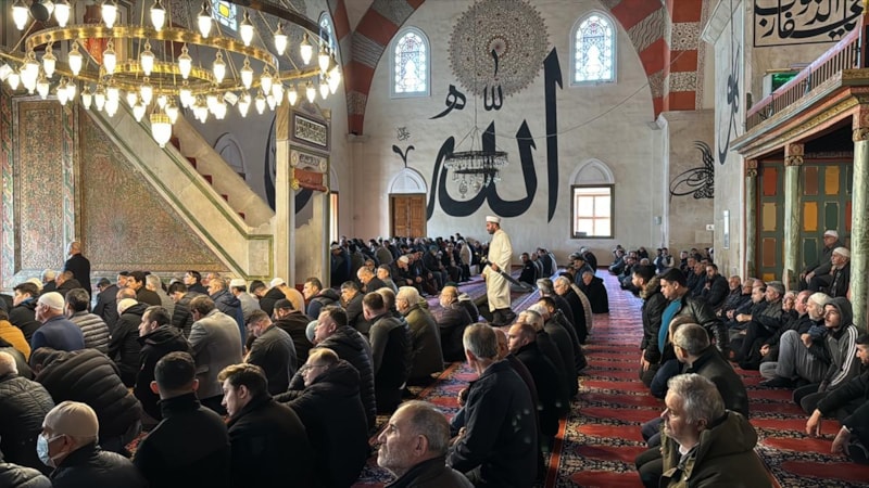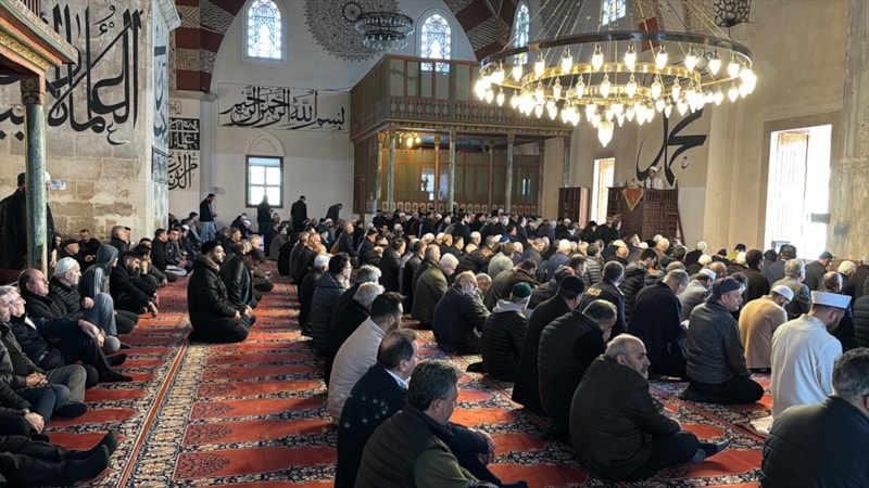 Edirne'de vatandaşlar, Ramazanın ilk cuma namazını kılmak için camilerde yoğunluk oluşturdu. Eski Cami'de Sağ imamların kılıçla dua etmesine yönelik gelenek Osmanlı'dan bu yana devam ediyor.