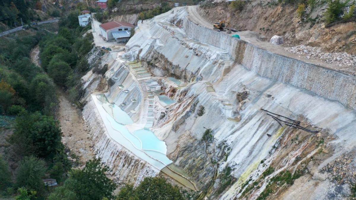 Giresun'un Dereli ilçesinde bulunan "Göksu Travertenleri Projesi" kapsamında oluşturulan göletler, turkuaz rengiyle Pamukkale'yi andırıyor.