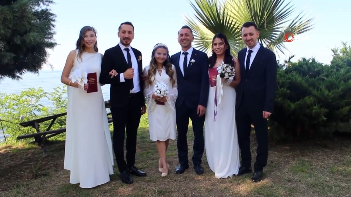 2 yılı aşkın süredir birlikte oldukları kız arkadaşları Kübra Cömert, Serap Yıldırım ve Sevda Yıldız ile aynı anda nikâh masasına oturan 3 kardeş, törene katılanlara ilginç bir deneyim yaşattı. Giresun Belediye Başkanı Fuat Köse’nin kıydığı nikâh töreni ilginç anlara sahne oldu.