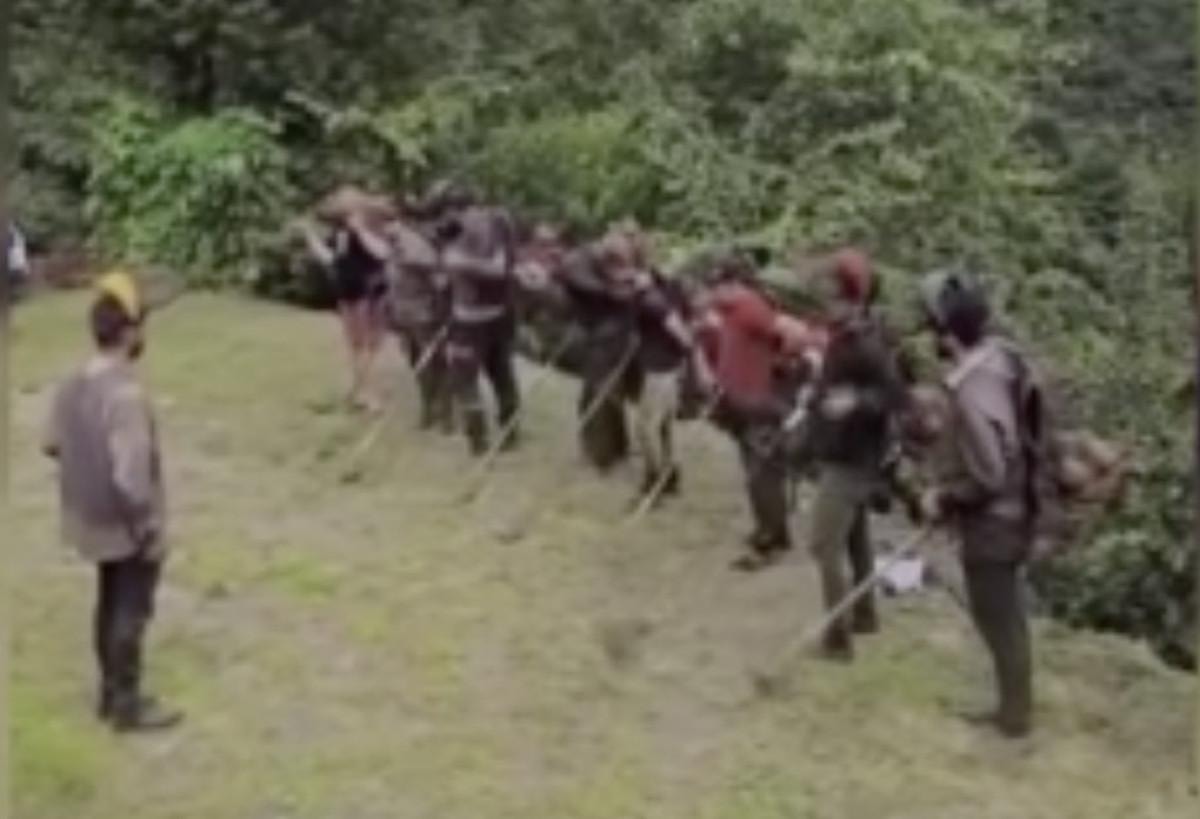 İçtima alan grup, ot biçmenin zorluklarını vurgulayan bir yemin metni okudu ve ardından bahçelere dağıldı.