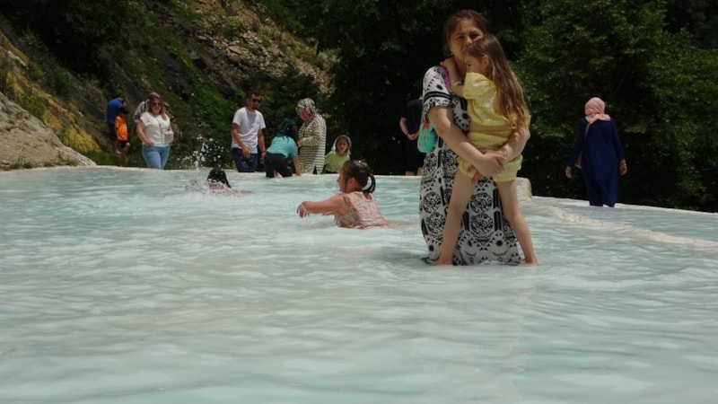 Kurban Bayramı tatili için Göksu travertenlerini tercih eden vatandaşlar, herkesi bu doğal güzelliği görmeye davet ederken, bölge 9 günde 30 bin kişiye ev sahipliği yaptı.