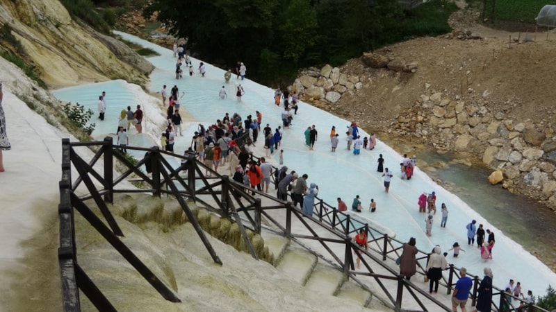 Samsun'dan ailesi ile bölgeye gezmeye gelen Melih Akgül, ilk defa ziyaret ettiği travertenlere hayran olduğunu belirterek, "Pamukkale'yi görmek için Denizli'ye gitmeye gerek yok. Biz aile olarak Pamukkale'ye de gittik ama bu kadar eğlenmemiştik. Burası çok daha ilgi çekici, doğa ile iç içe bir yer. Her haliyle Pamukkale'yi aratmayacak bir yer. Sadece gördüm ki buraya suya girmek için hazırlıklı gelmek lazımmış onu öğrendim. Herkese de burayı görmelerini tavsiye ederim." dedi.