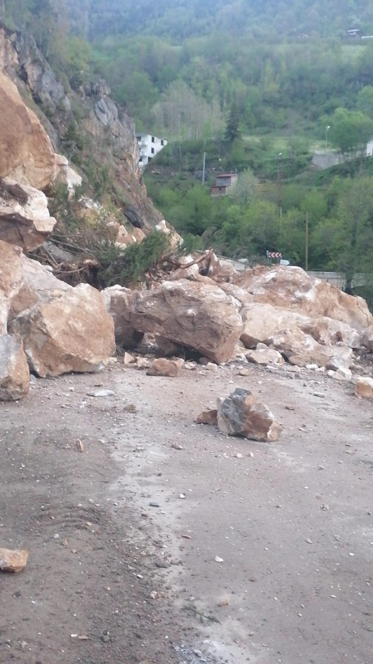 Heyelan sonucu yamaçtan kopan toprak ve kaya parçaları sürüklenerek, Yavuzkemal beldesi yolunu ulaşıma kapattı.