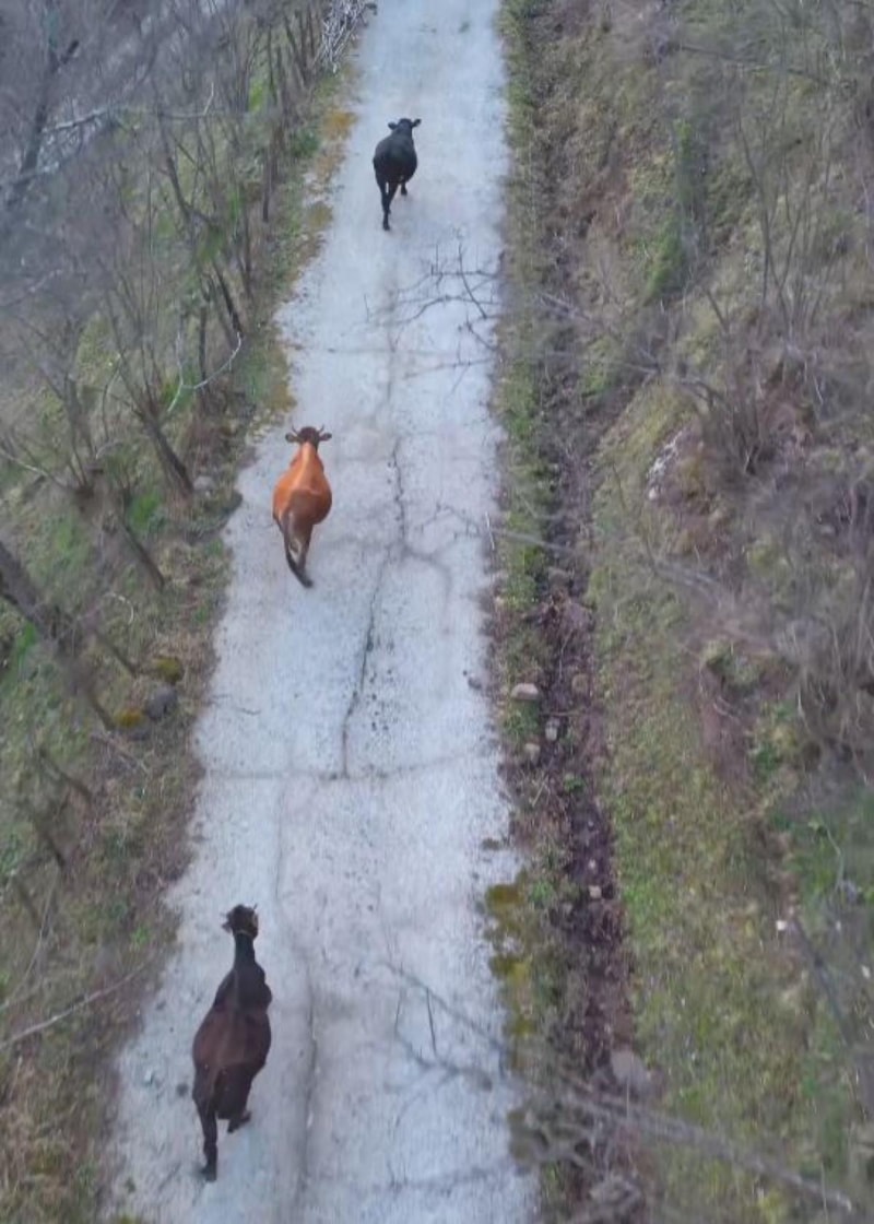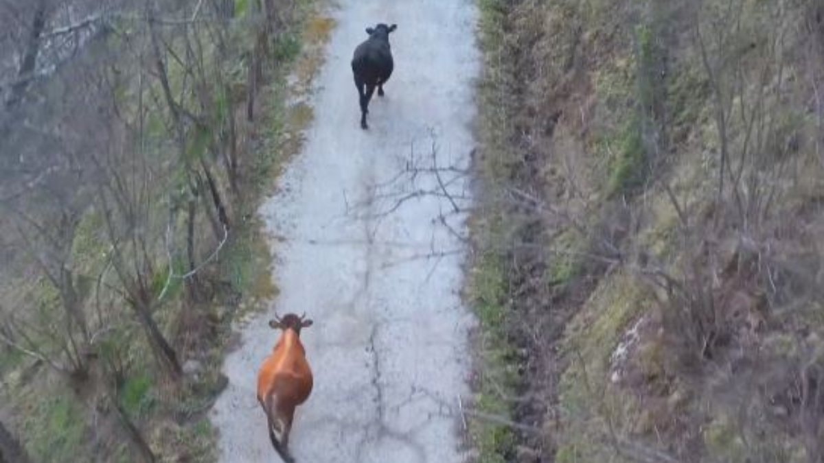 İlyasoğlu, yine drone ile kayda aldığı bu anları, sosyal medya hesabından “Her köye gittiğimde inekleri al diyen anneme oturduğum yerden almam şoku.” notuyla paylaştı.