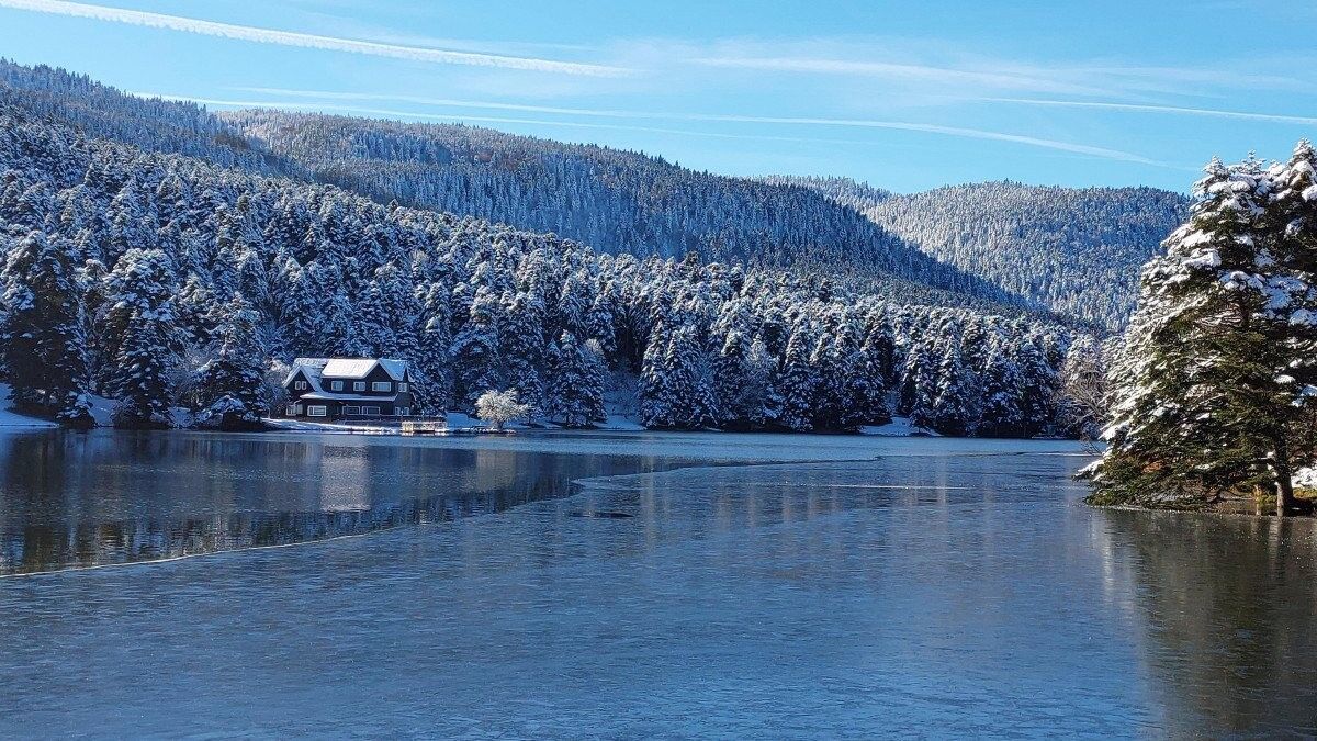 DHA'nın aktarımına göre; çevresi çam ormanlarıyla kaplı doğa harikası, kış aylarında kar yağışıyla daha da güzelleşirken, ziyaretçiler hayran kaldı.