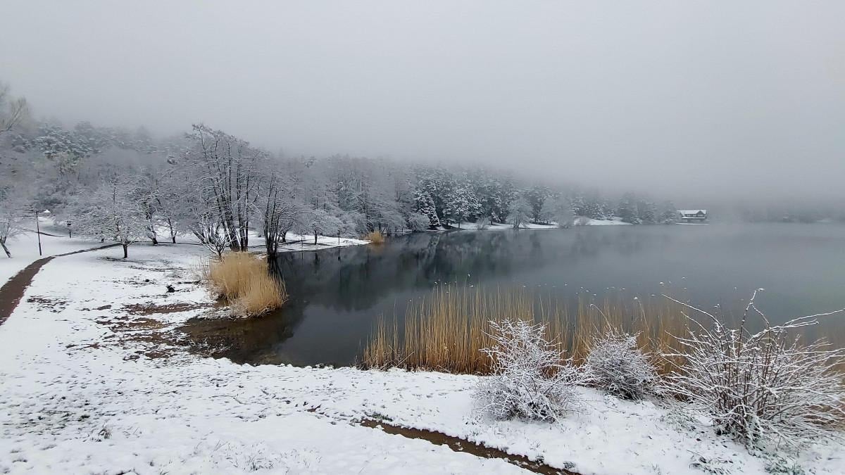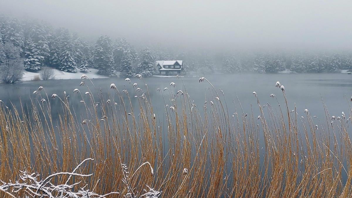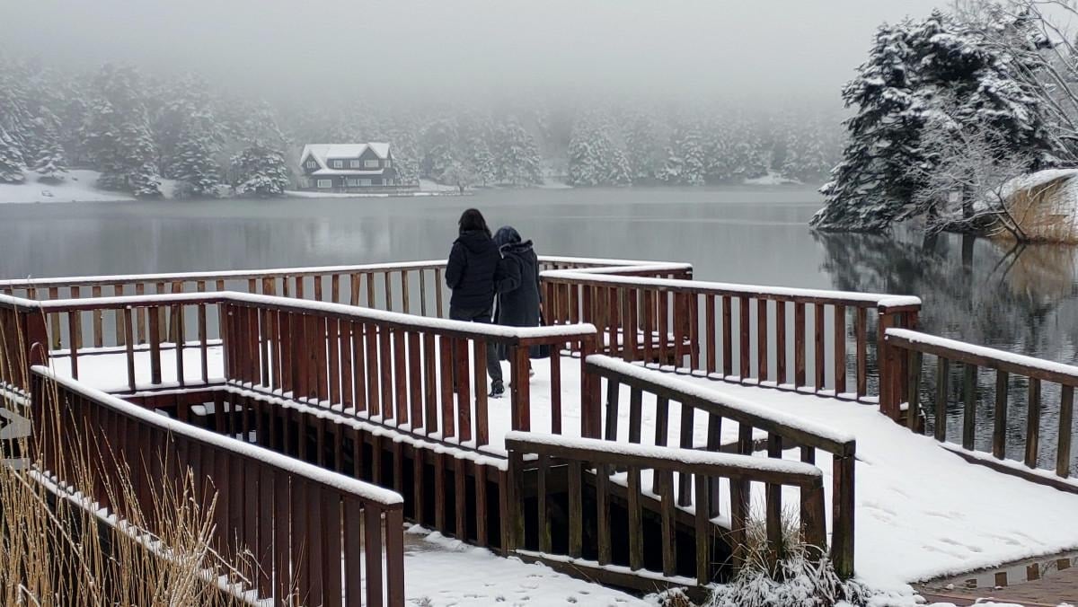 Kent merkezine yaklaşık 13 kilometre uzaklıktaki Gölcük Tabiat Parkı, kar yağışıyla beyaz örtüyle kaplandı.