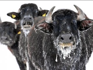 Çaldıran'da, mandaların sıra dışı beslenmesi de ilgi çekiyor. Sabah saatlerinde ilçede bulunan Kaz Gölü'ne gelen mandalar, göle girip tabanındaki yosunlar ile besleniyor.