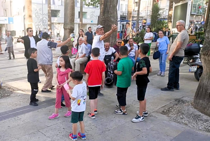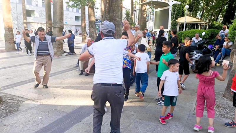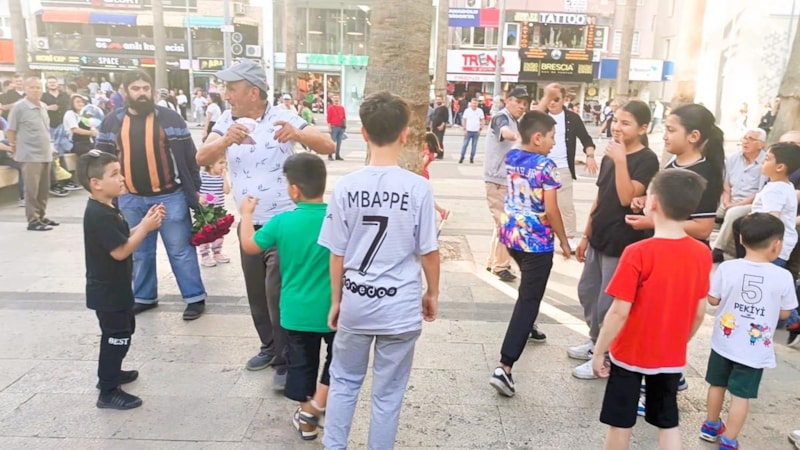 “Sen kafayı mı yedin?” şeklinde kendisine engel olmaya çalışan arkadaşına da aldırmayan Halil, hem oynayıp hem de etrafında toplanan kalabalığa para dağıtmayı sürdürdü.