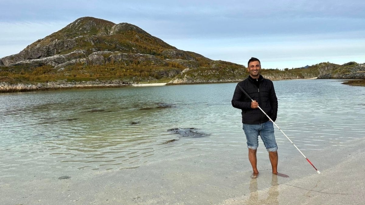 Aksaray'da yüzde 90 oranında görme engelli olan öğretim üyesi 40 yaşındaki Dr. Önder İşlek, beyaz bastonuyla tek başına 60 ülke gezdi.