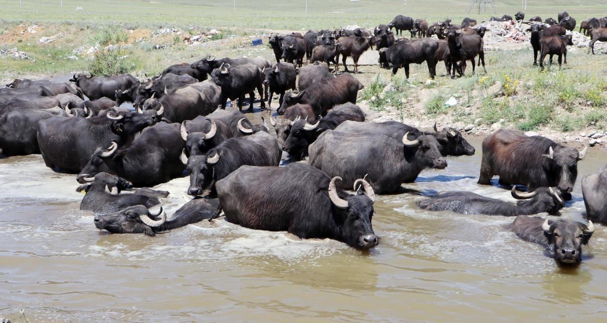 Yöre sakinleri, toplam 120 mandanın bulunduğu mahallede, meralarda bu hayvanlar için doğal göletler oluşturuyor.