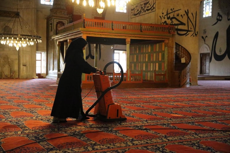 Camilerde temizlik çalışmaları yapıldı. Söz konusu yapılar, özel titiz bir hazırlık sürecinden geçti.