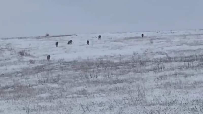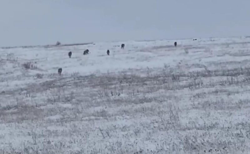 Gümüşhane'nin Kelkit ilçesine bağlı Babakonağı köyü sakinlerinden Latif Keskinoğlu, köy girişindeki Kıran mevkiinde kurt sürüsünü fark etti.