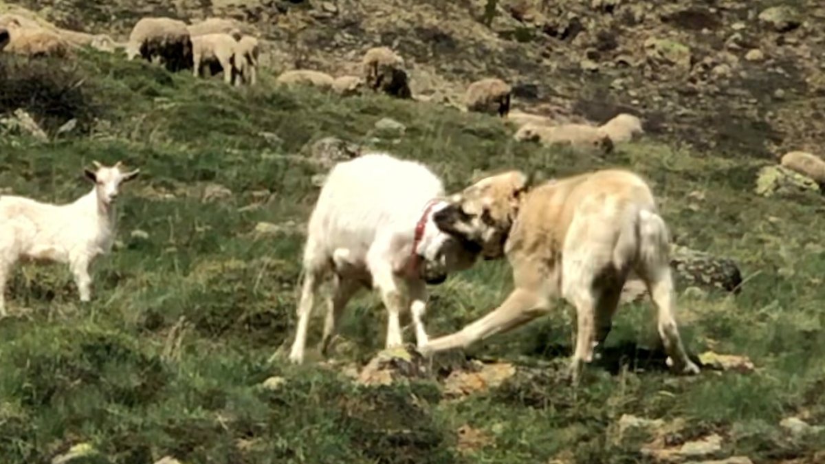 Gümüşhane'de çoban köpeğine kafa tutan keçi VİDEO