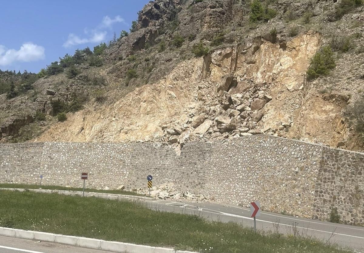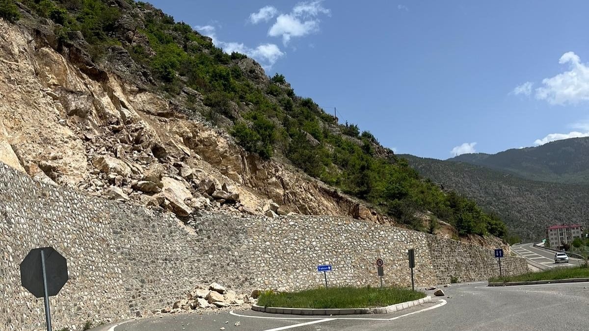 İlçeye bağlı Kaledibi Mahallesi Yarlar mevkiinde, sabah saatlerinde yamaçtan kopan kaya parçaları yola sürüklendi.