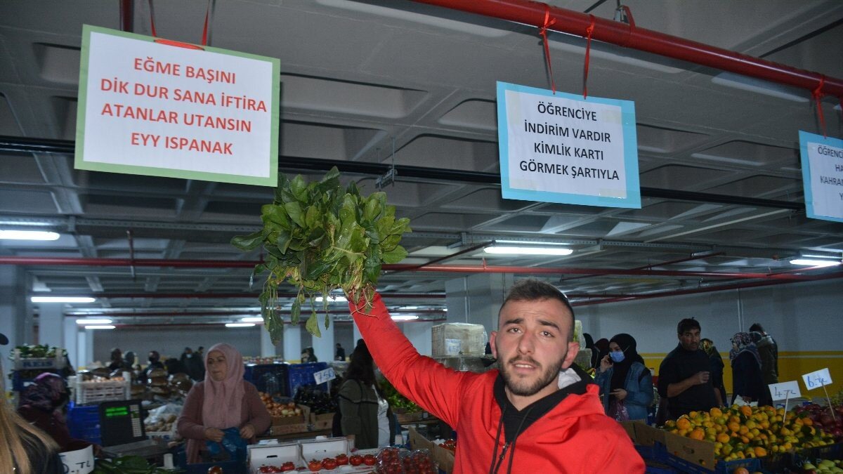 Satışları artırmak için afişli çözüme başvuran pazarcı, tezgahının üst kısmına astığı ‘Eğme başını dik tut, sana iftira atanlar utansın eyy ıspanak’ yazılı afişle ıspanağın masum olduğunu kanıtlamaya çalıştığını söyledi.