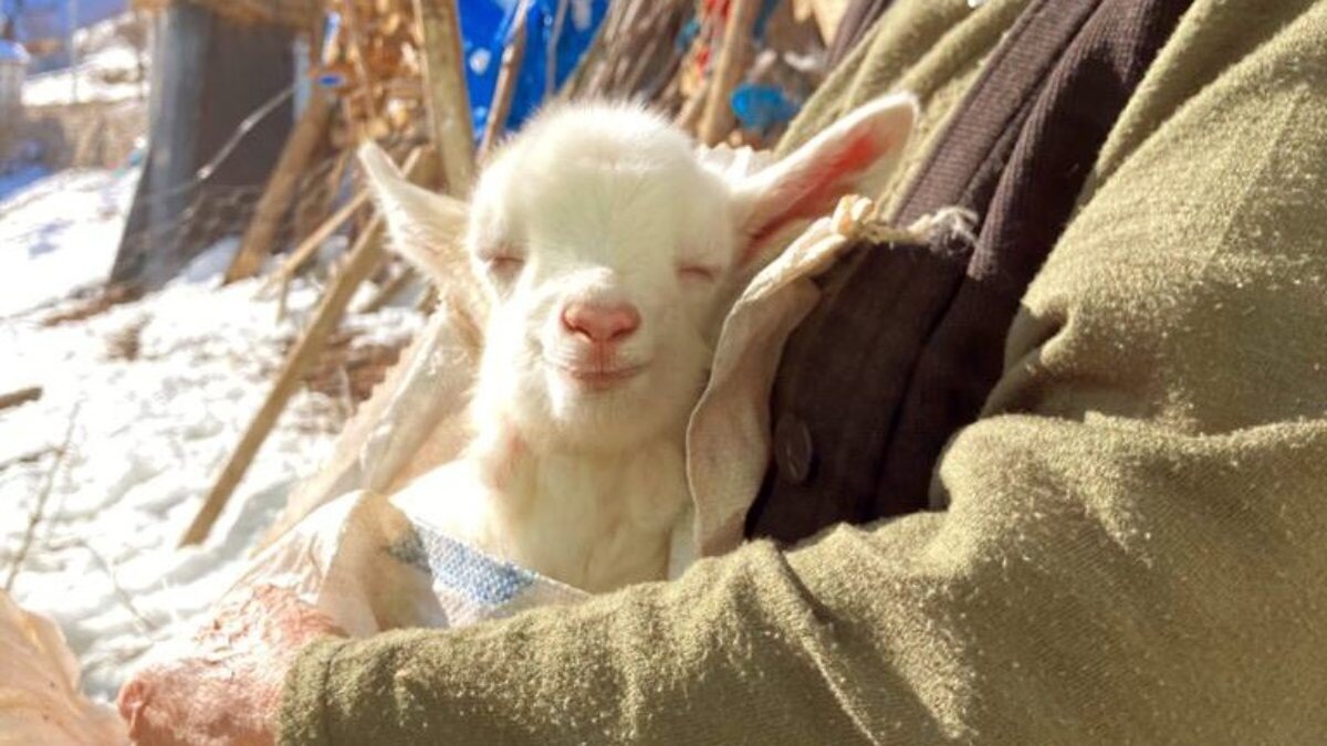 Karların erimesiyle birlikte ilk kez ağılından ve annesinin yanından dışarıya çıkarılan keçi yavrusunu üşümesin diye kucağına alan babaannesini fotoğraflayan Büşra Akbulut, keçi yavrusunun hem ana kucağı hem de güneşi görünce yüzüne yansıyan tebessümü kayıtlara geçirdi.