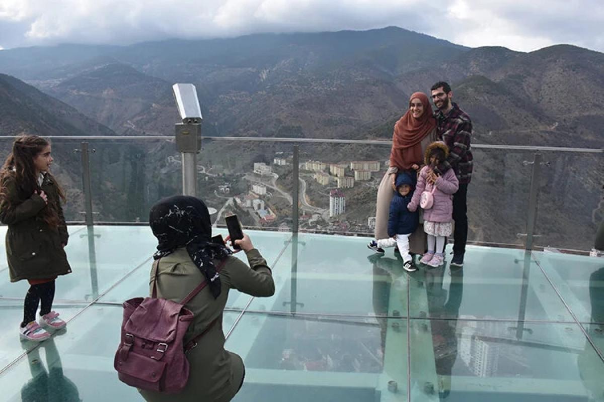 Bölgeye gelen turistlerin en fazla ziyaret ettiği yerler arasında bulunan cam seyir terasına turizm sezonunun açılmasıyla birlikte ilgi büyük.