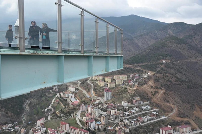 Gümüşhane'nin Torul ilçesinde bulunan 90 metrelik cam şehir terası, bulunduğu konut itibariyle turistlerin ilgisini çekiyor. Şehre gelenler seyir terasına uğramadan edemiyor.