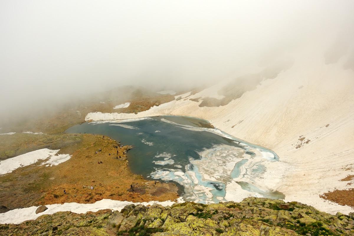 Haziran ayının son günlerine yaklaşılmasına rağmen parkın birçok noktasında hala kış mevsiminden kalma dev kar kütleleri gözlenirken, bu durum bölgeye farklı bir atmosfer katıyor.