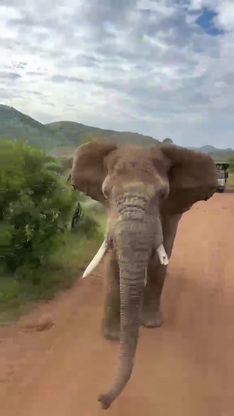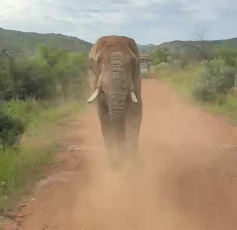 Türkiye’den Güney Afrika’ya giden 20 kişilik turist kafilesi, safari turu sırasında hayatlarında unutamayacakları bir deneyim yaşadı. Yanlarından geçen 5 ton ağırlığındaki fil, bir turistin dokunma girişimi üzerine öfke gösterisi yaparak turistleri kovaladı.