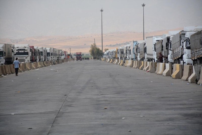 Farklı illerden tırlarına yükledikleri ürünlerin Irak'a naklini gerçekleştirmek için Habur Sınır Kapısı'na gelen şoförler, geçiş işlemleri için sıra bekliyor.