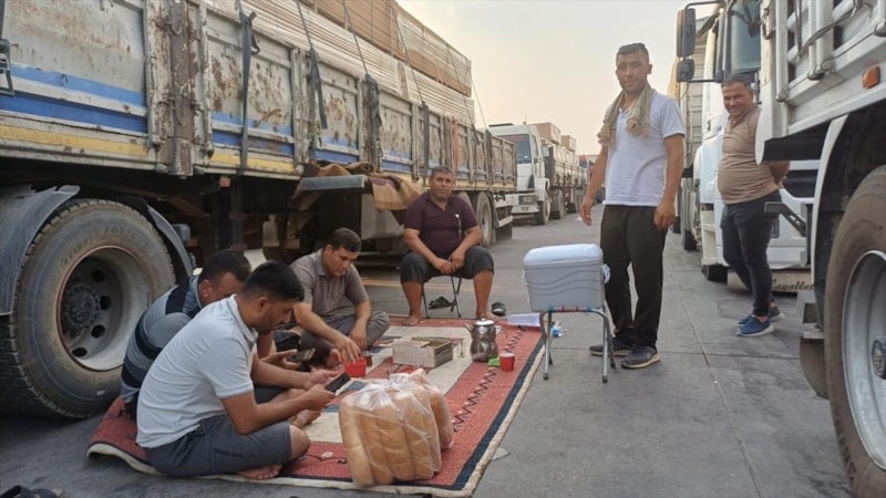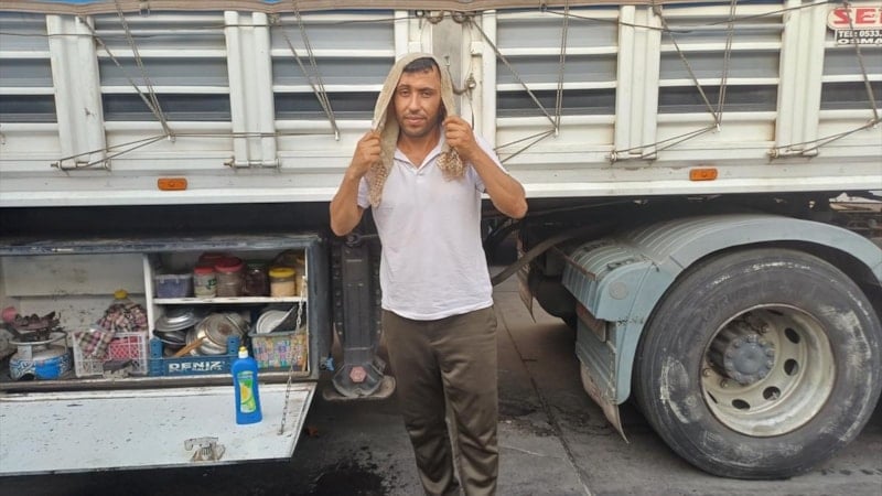 Sıcaklık rekorları kıran Silopi'de mağdur olanlardan mesleklerden gruplarından biri de tır şoförleri. Araçlarında klima açamıyor, başlarına geçirdikleri ıslak havlularla serinlemeye çalışıyorlar.