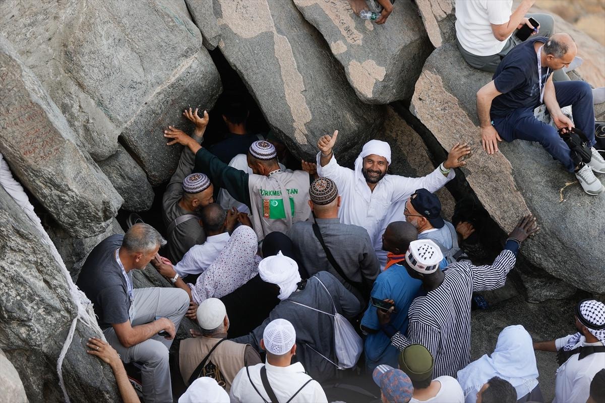 Hacıların zorlu tırmanışla ulaştığı bu kutsal mağara, kalplerde derin bir huzur ve manevi bir coşku uyandırıyor.