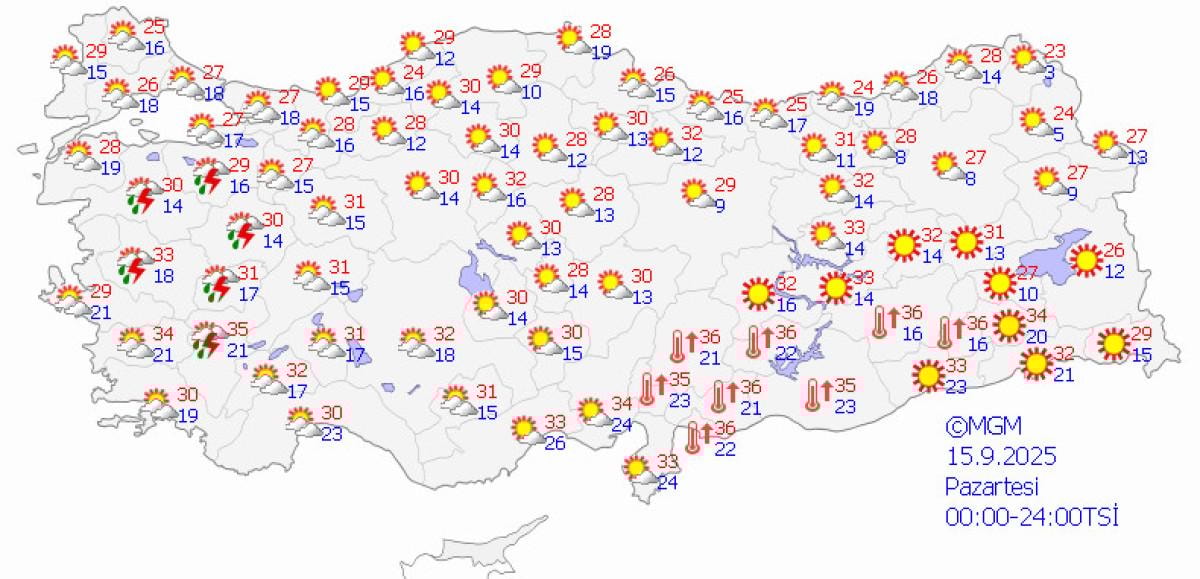 - Meteoroloji Genel Müdürlüğü'nün raporuna göre hafta sonu Türkiye genelinde sıcak hava etkili olacak.