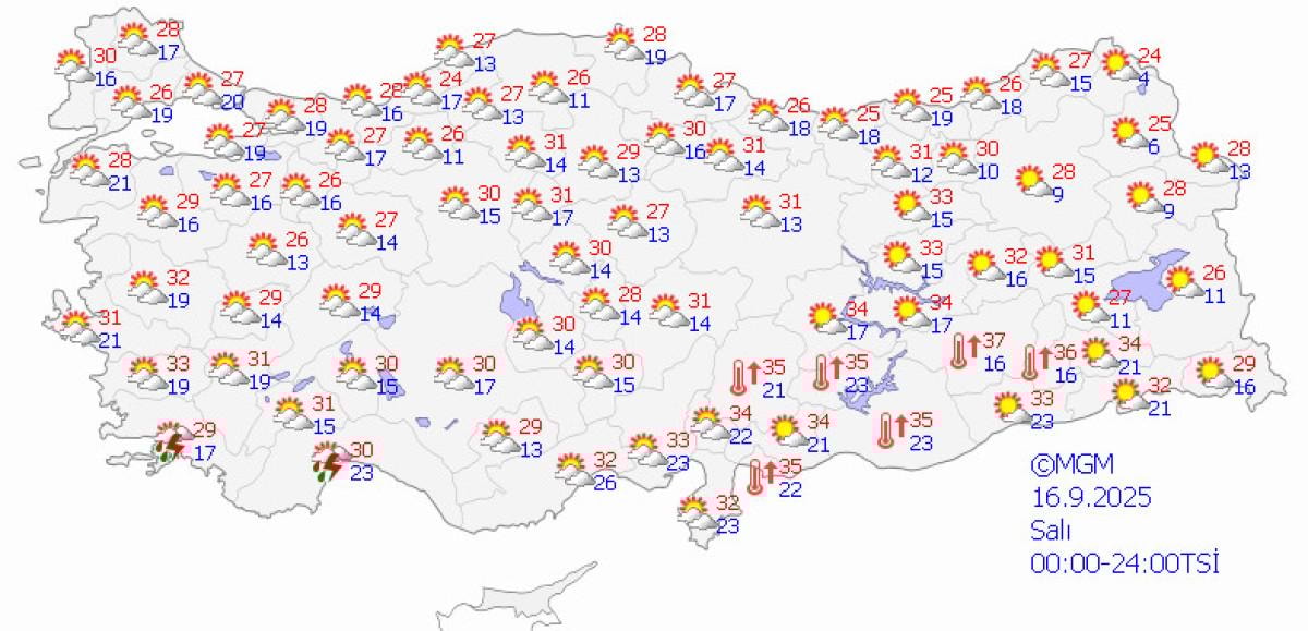 - Ankara ve İstanbul'da sıcaklık 27-28, İzmir'de ise 32-33 derece olarak ölçülecek.