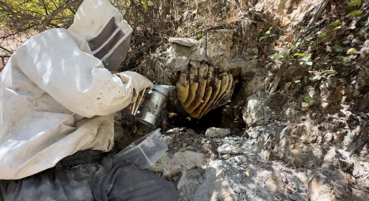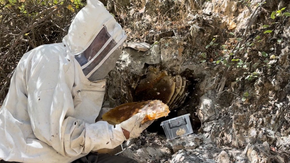 Yiğit, balları tüm tehlikelere rağmen 2 bin rakımlı dağa tırmanarak topladı.