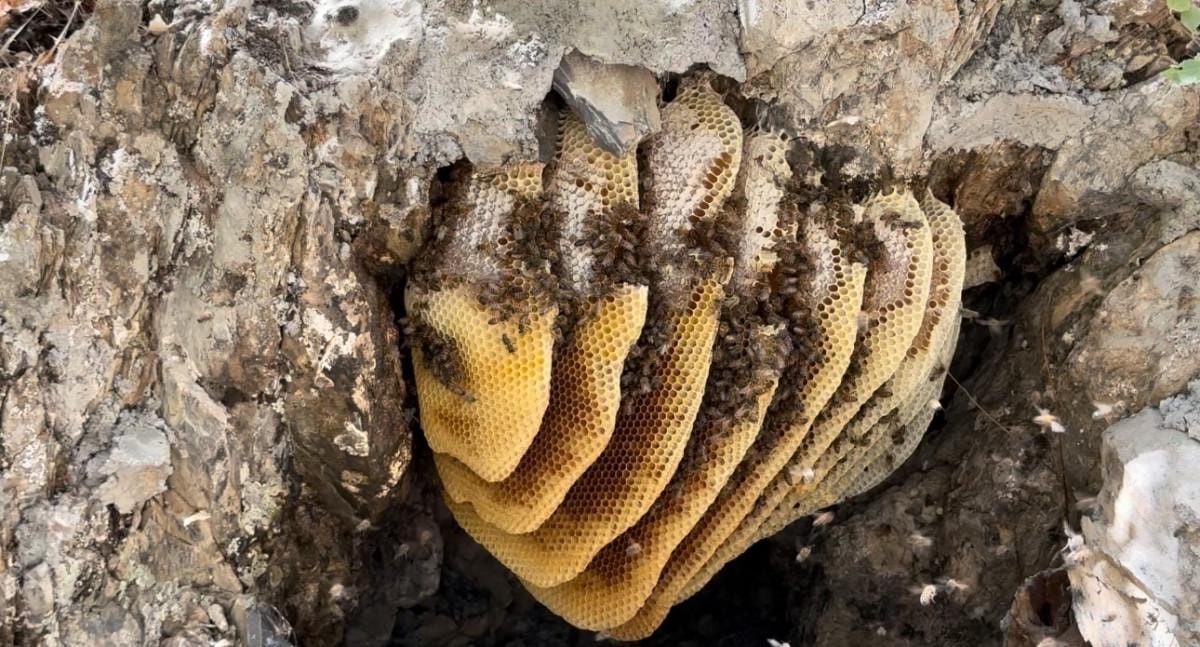 Yiğit, gezdiği sırada kayalar arasında çok sayıda arının yuva yaptığını tespit etti.