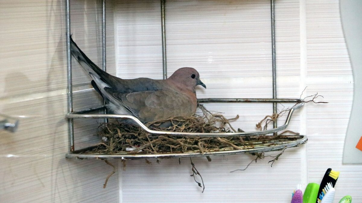 Hakkari'nin Yüksekova ilçesinde yaşayan Işık Ailesi'nin banyosuna, 15 gün önce bir çift kumru girdi. Kumruları bırakmayan aile, onları rahatsız etmemek için elinden geleni yapıyor.