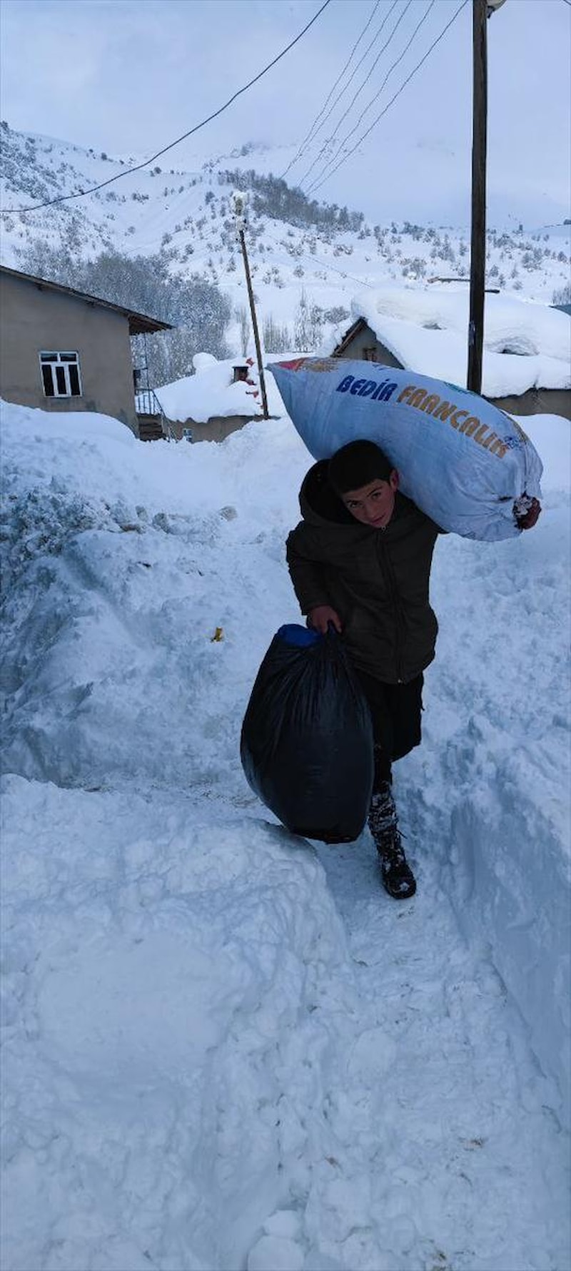 Köy sakinleri de ekmekleri poşetleyerek köy içindeki yolların kardan dolayı kapanması nedeniyle metrelerce sırtlarında taşıyıp görevlilere ulaştırdı.
