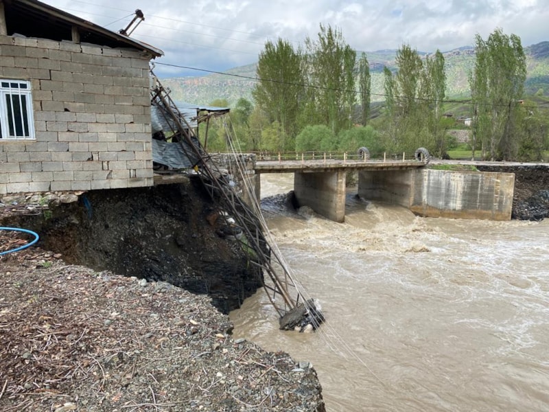 Hakkari'nin Derecik ilçesinde etkili olan sağanak yağış köprüleri yıktı, köy yolları ulaşıma kapattı.