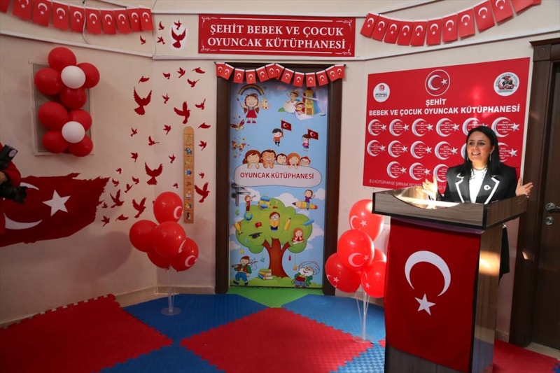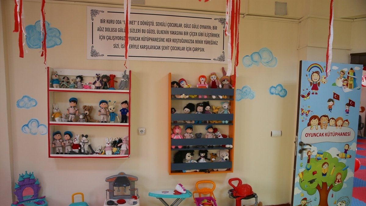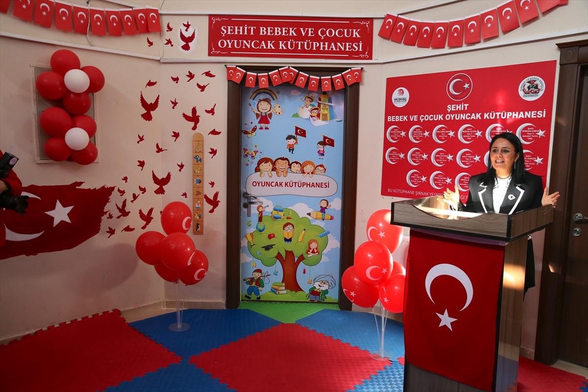 İçişleri Bakanlığı Sivil Toplumla İlişkiler Genel Müdürlüğü ve Şırnak Yeşeren Gençlik Derneği işbirliğiyle Halime Hatun Anaokulu'nda açılan "Şehit Bebek ve Çocuk Oyuncak Kütüphanesi"nde; oyuncak, kadınların el emeğiyle hazırladıkları bez ve örgü bebekler gibi materyallere yer verildi.