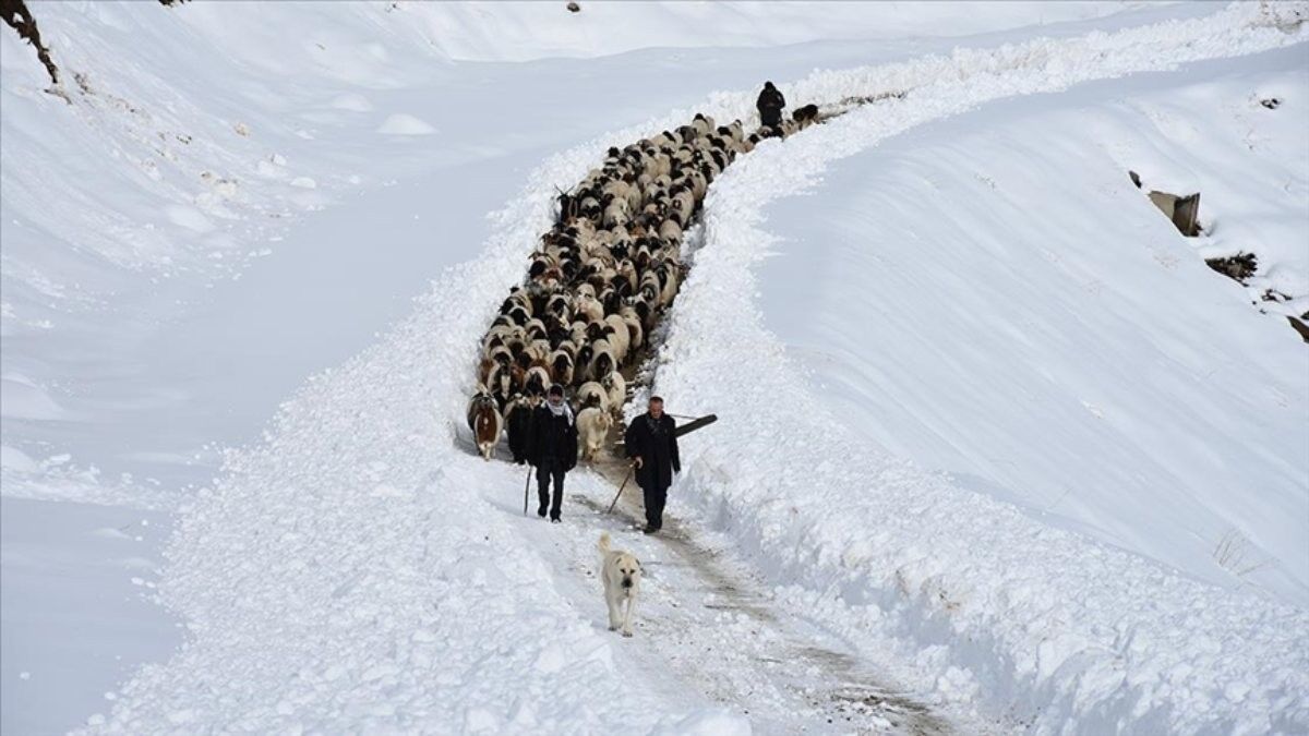 Yaklaşık yarım metre karın bulunduğu bölgeye yönlendirilen karla mücadele ekiplerinin çalışması sonucu yolun açılmasıyla mezrada kalan besiciler de küçükbaş hayvanlarıyla Hakkari'ye doğru yola çıktı.