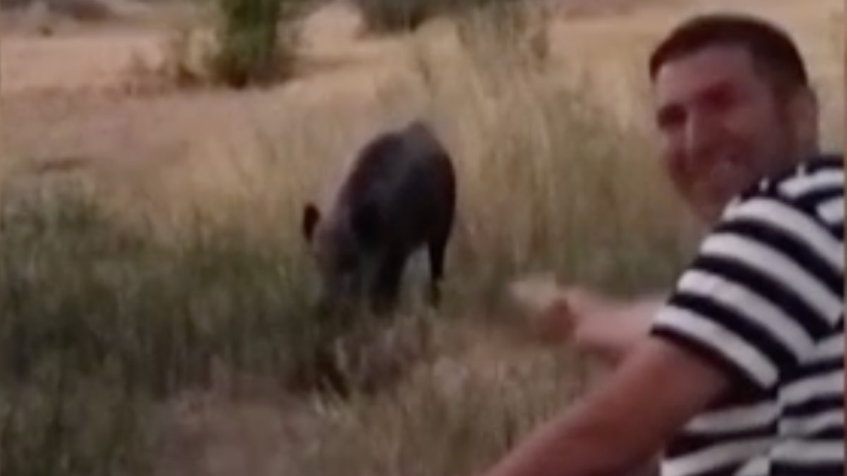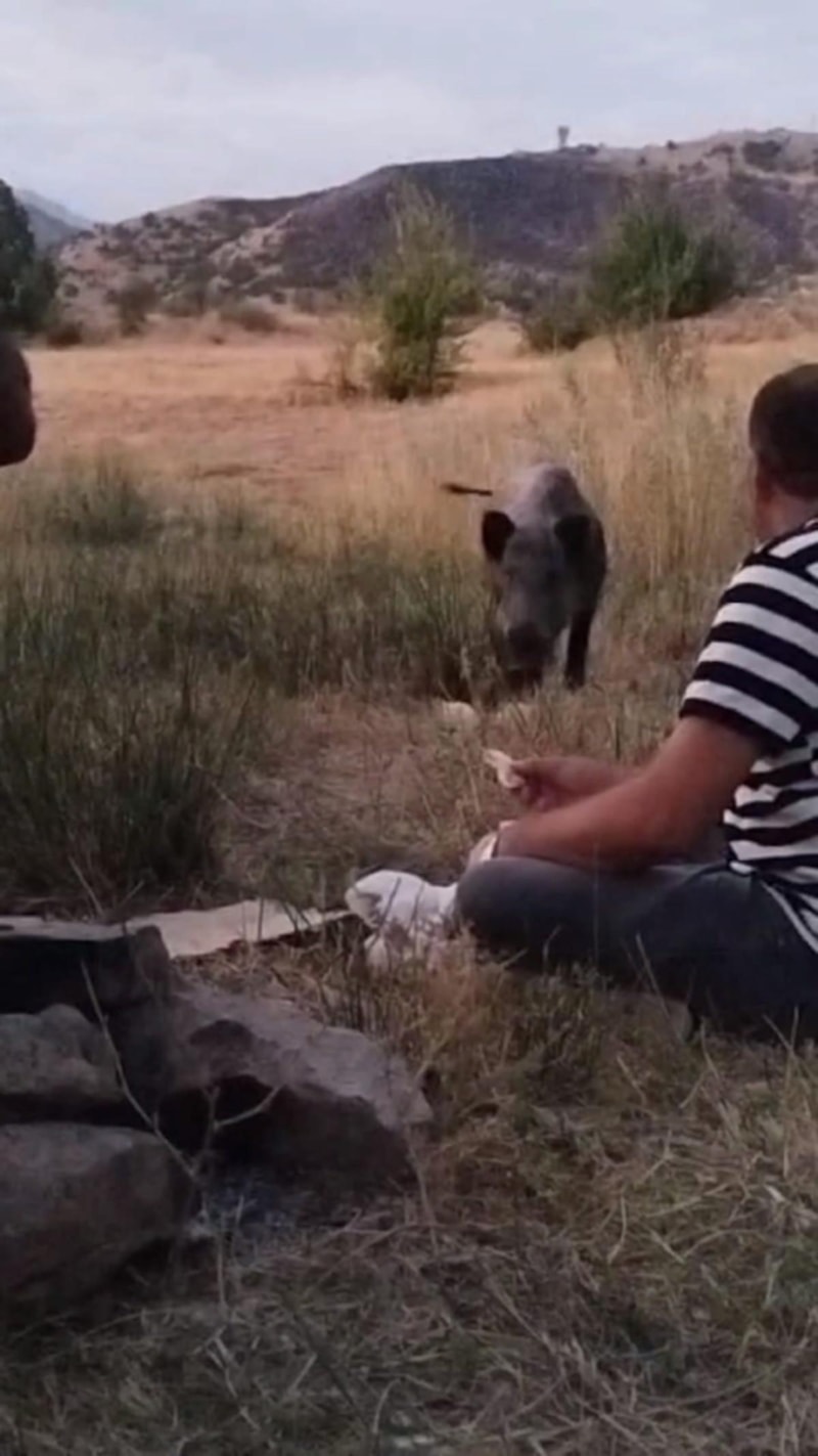 Domuzu ürkütmeyen piknikçiler kendisine yiyecek verdiler.