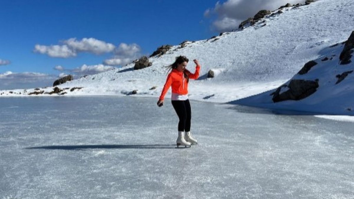 Hakkarili 3 doğasever, donan gölde buz pateni ile kayıp dans etti VİDEO