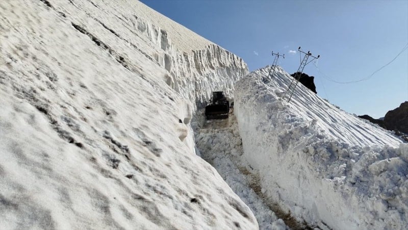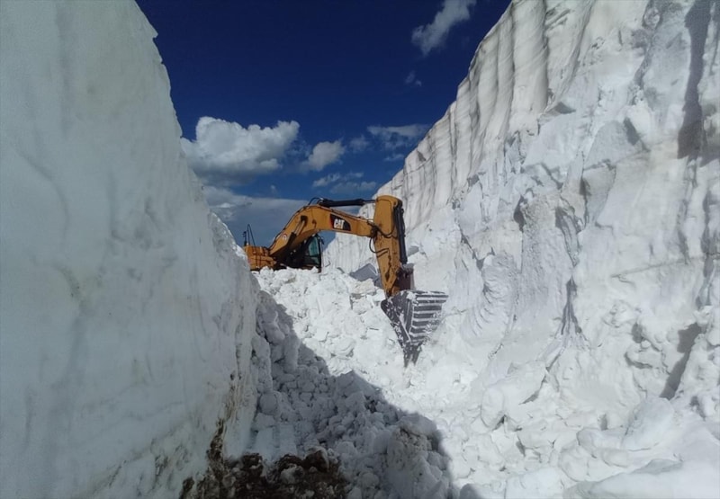 Bu kapsamda Hakkari'nin Yüksekova ilçesinde ekiplerin haziran ayında da karla mücadele çalışmaları devam ediyor.
