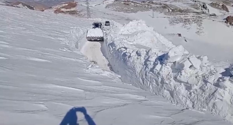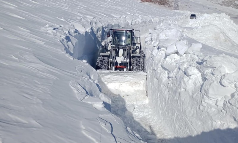 Kardan oluşan tüneller ve 5 metreyi bulan kar kalınlığına karşı zaman zaman zor anlar yaşayan ekipler, kepçe ile açamadıkları yolda ekskavatör de kullanıyor.